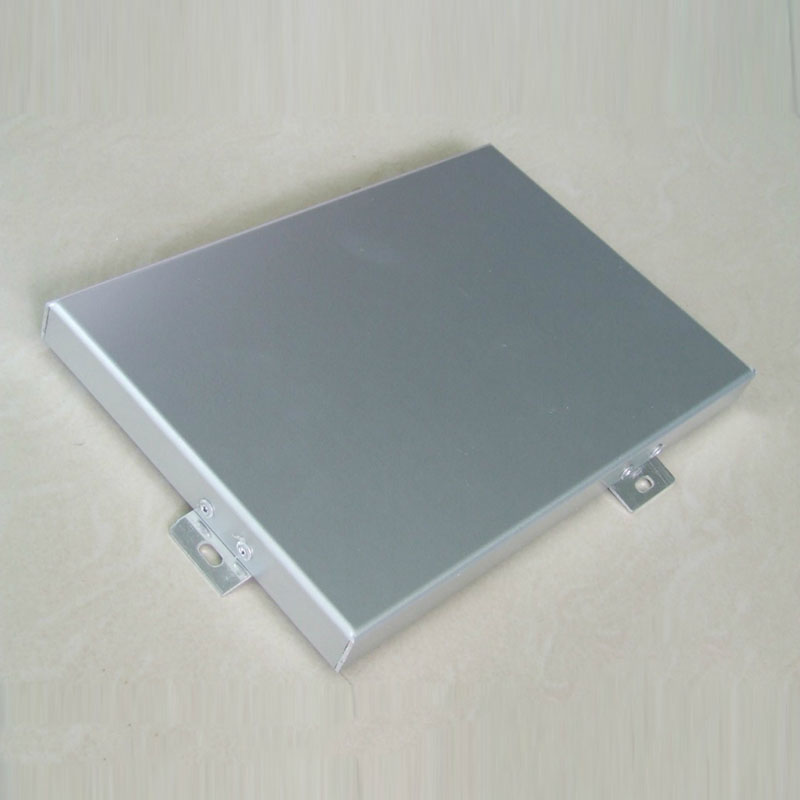鋁單板采用優(yōu)質(zhì)鋁合金板加工形成?;男吞柾ǔ?003,狀態(tài)為H24,其常規(guī)厚度為2mm,2.5mm和3mm三種。其構(gòu)造主要由面板、加強(qiáng)筋和角碼組成。面板和加強(qiáng)筋通過電焊螺釘連接,使之成為一個牢固的整體,極大地增強(qiáng)了鋁單板的強(qiáng)度與鋼性,確保了長期使用過程中的抗風(fēng)壓能力和鋁板表面的平整度。