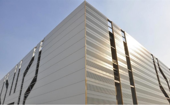 與常規(guī)鋁單板相比,沖孔鋁單板最大的特征就是表面形狀各異的沖孔(包括圓孔、方孔、五角星、六邊形孔等),裝飾效果突出,也能夠在一定程度上起到降低噪音的作用。集裝飾性與實用性于一體,沖孔鋁單板在工程裝飾中使用的越來越多。氟碳沖孔鋁單板特點: