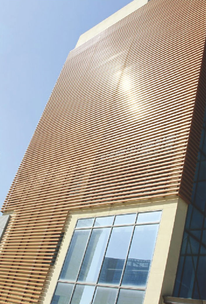 木紋鋁單板是通過噴涂以及熱轉(zhuǎn)印或輥涂的工藝。在鋁板表面涂敷木紋裝飾涂層。鋁板表面的木紋表面具有清晰明了的纖細(xì)或粗狂的仿真木紋紋理,具有色彩豐富、自然逼真的特點(diǎn)。木紋紋理不僅能在平面鋁板上應(yīng)用,更能在異型鋁板表面上應(yīng)用,從而提高了產(chǎn)品外觀裝飾效果及使用價值,美化了建筑空間環(huán)境,未涉及師提供了更為廣闊的構(gòu)想空間,以創(chuàng)造出更獨(dú)特美觀的作品。